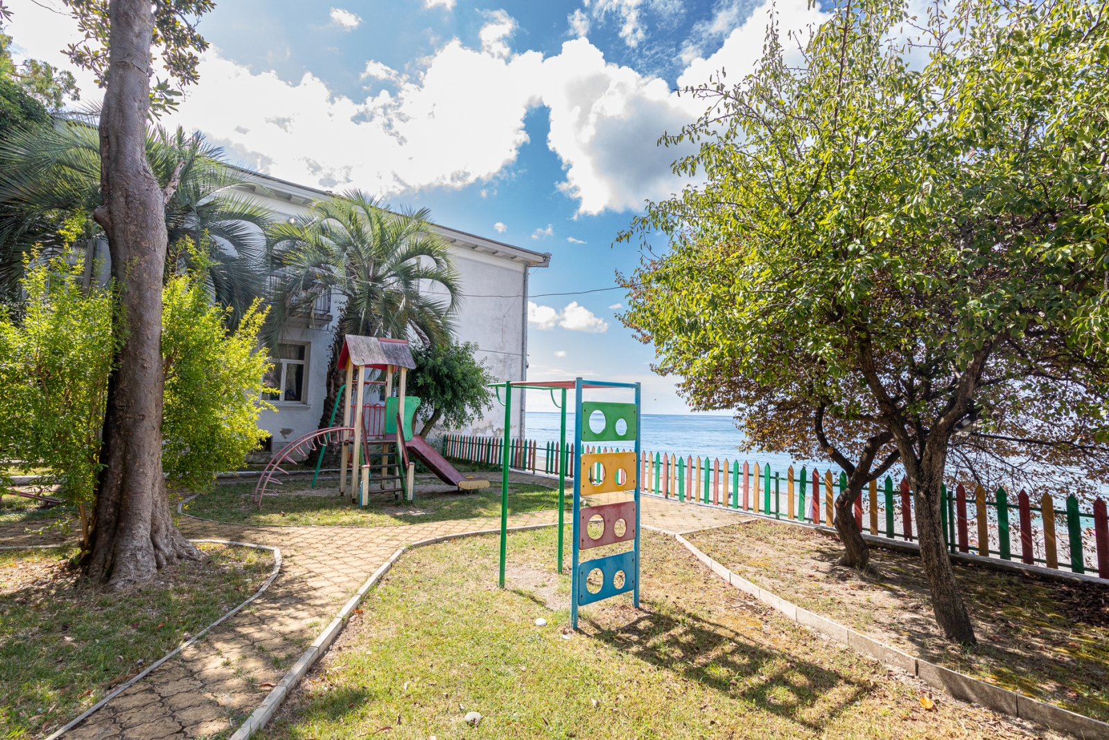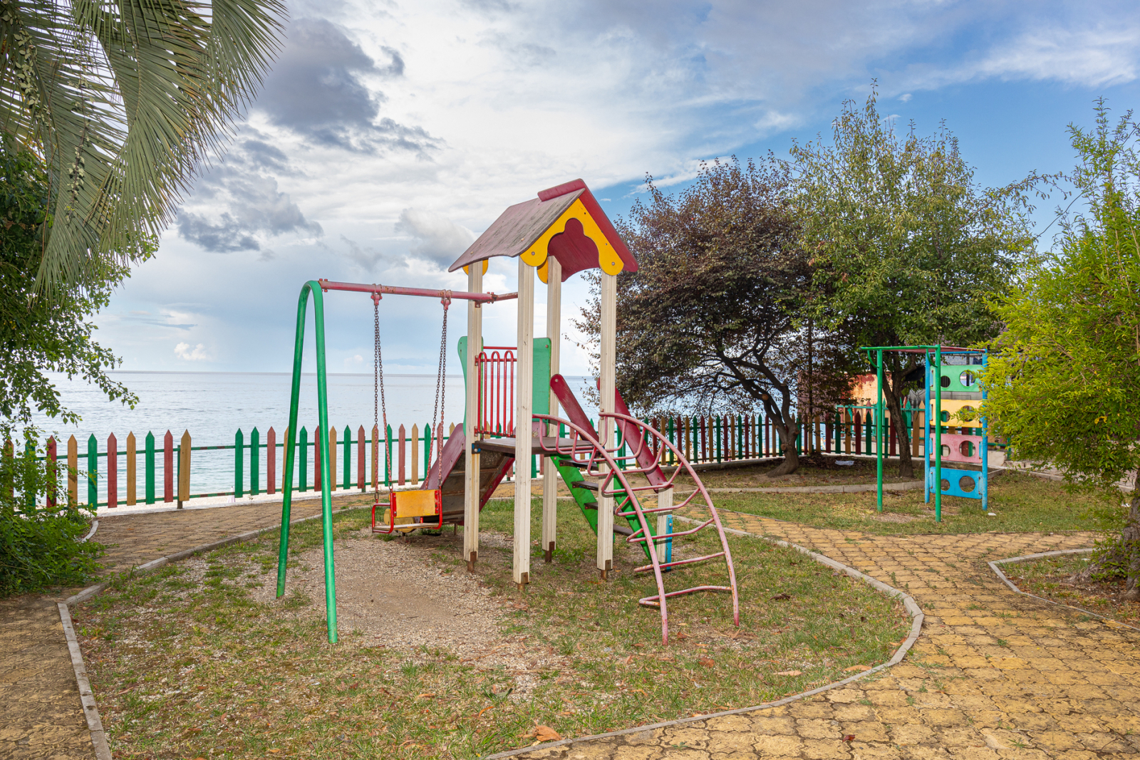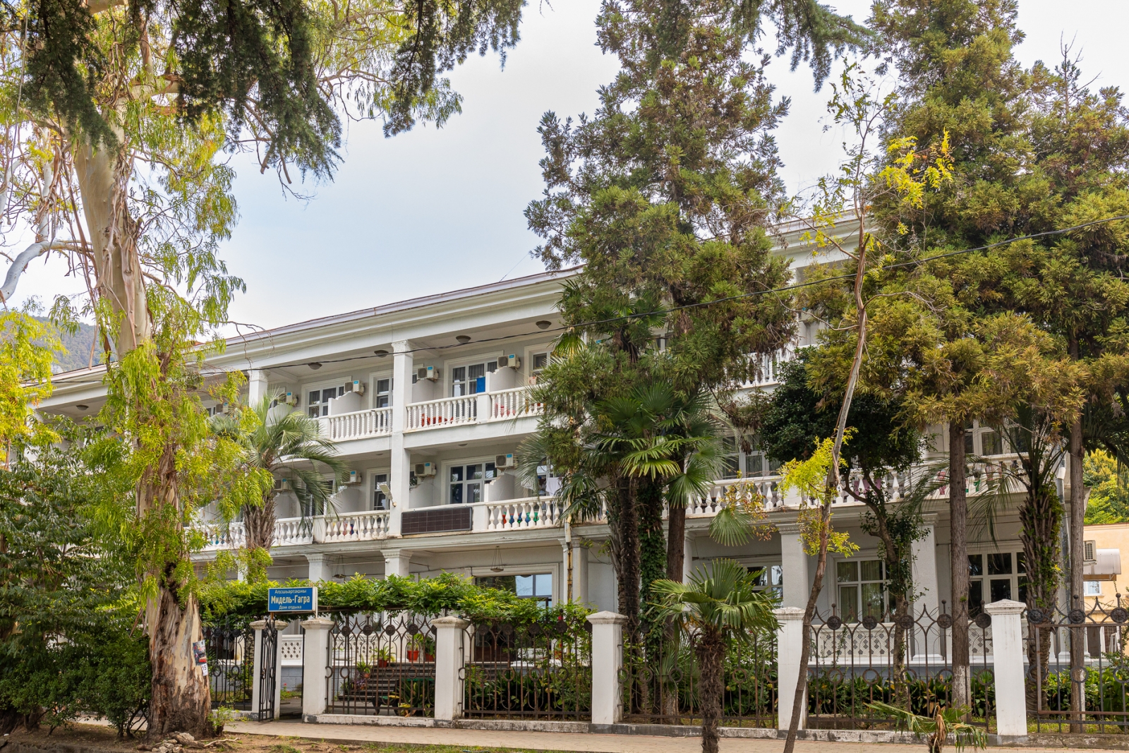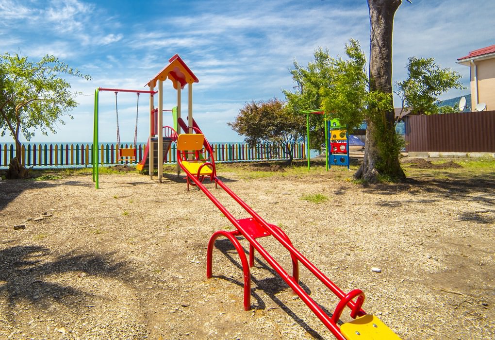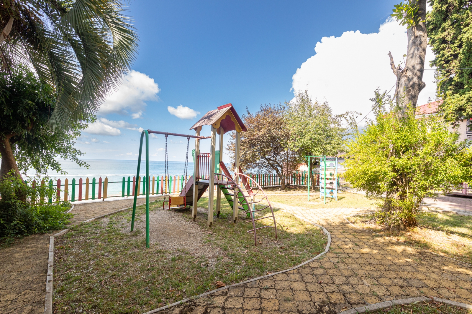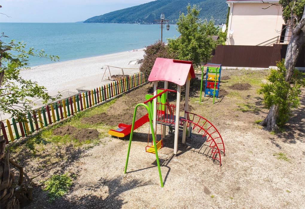 На территории также есть детская игровая зона, парковка, бар и ресторан с открытой террасой, где сервируется 3-разовое комплексное питание для проживающих. В качестве отдельной услуги работает массажный кабинет. А услуги экскурсионного бюро позволяют прямиком от жилого корпуса отправиться на экскурсию в любую точку Абхазии.