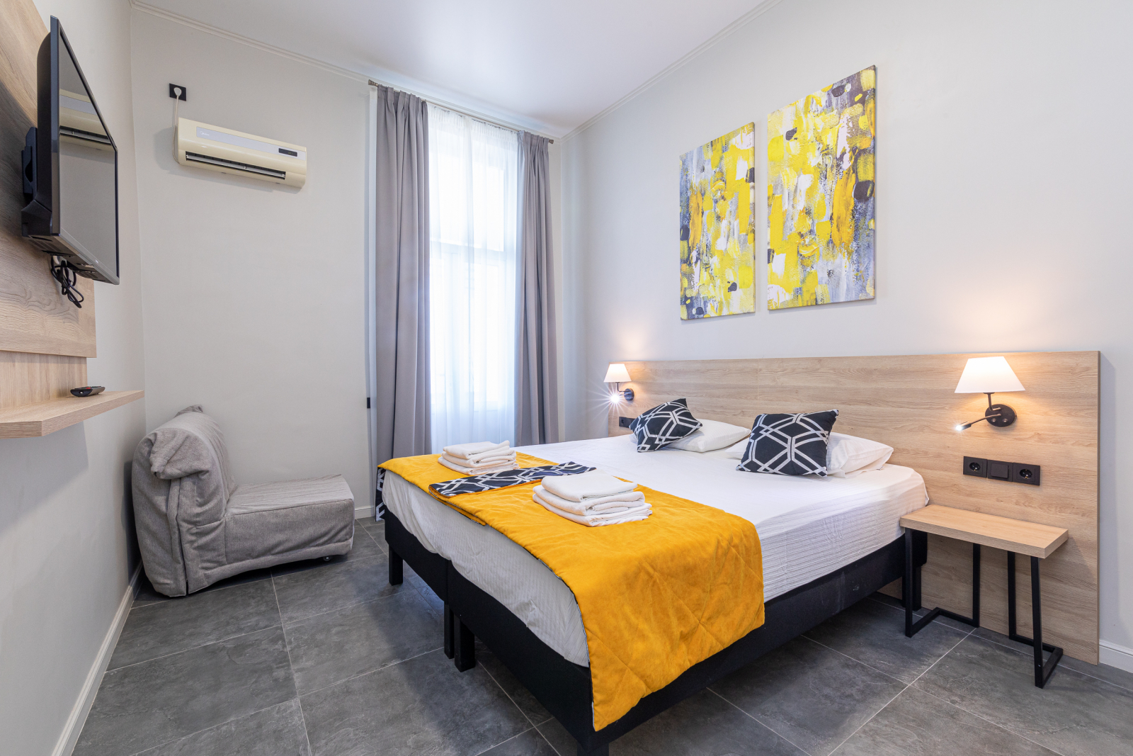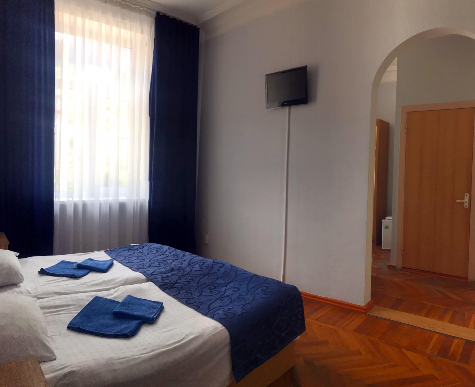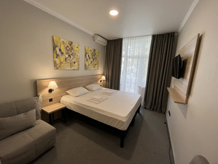 Номерной фонд состоит из трех корпусов: №1 и №2 на первой линии, №3 стоит через дорогу на второй линии. Есть категории «стандарт» и «комфорт» с балконом или без, оборудованные кондиционером, телевизором и холодильником. Номера обновленные и уютные.