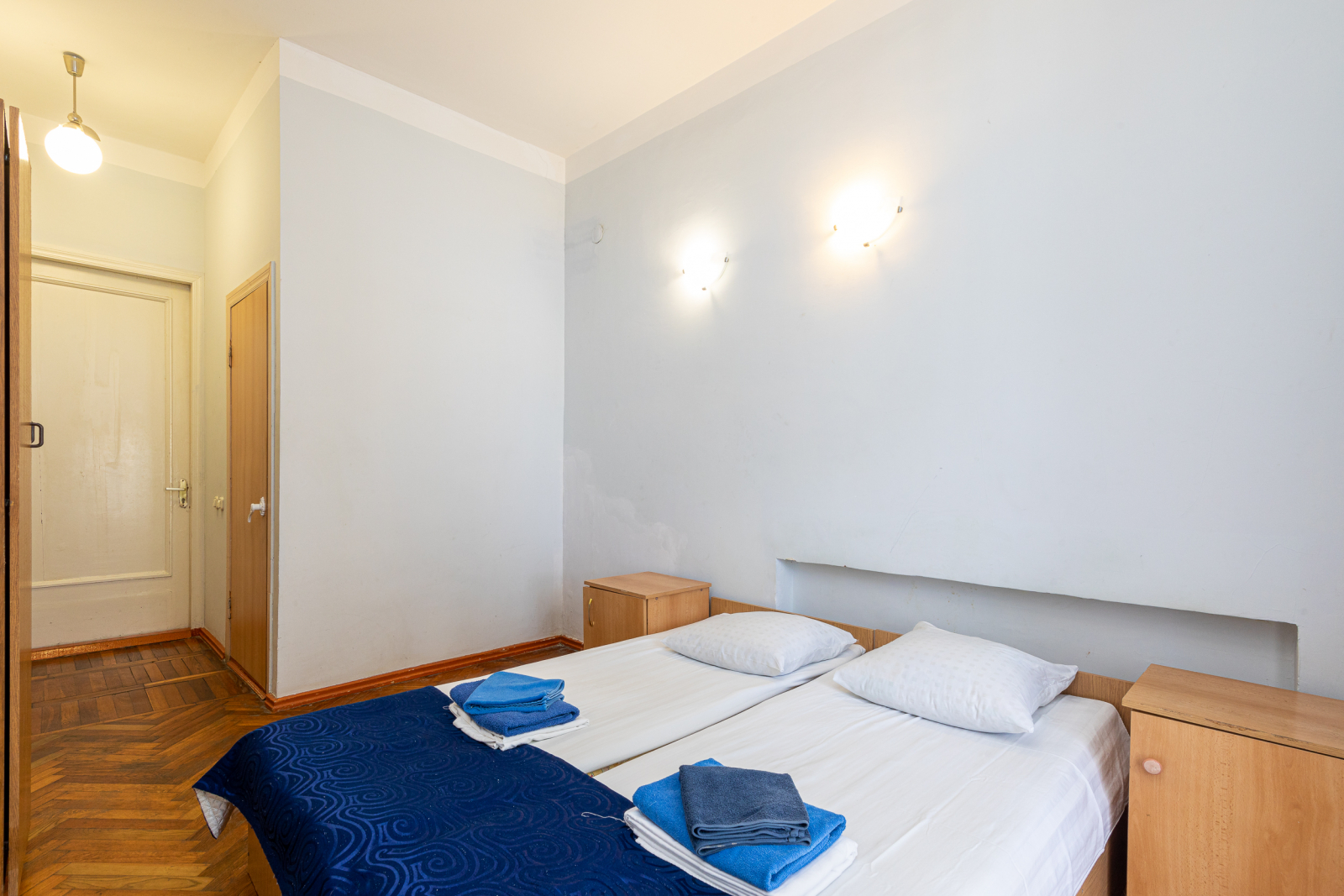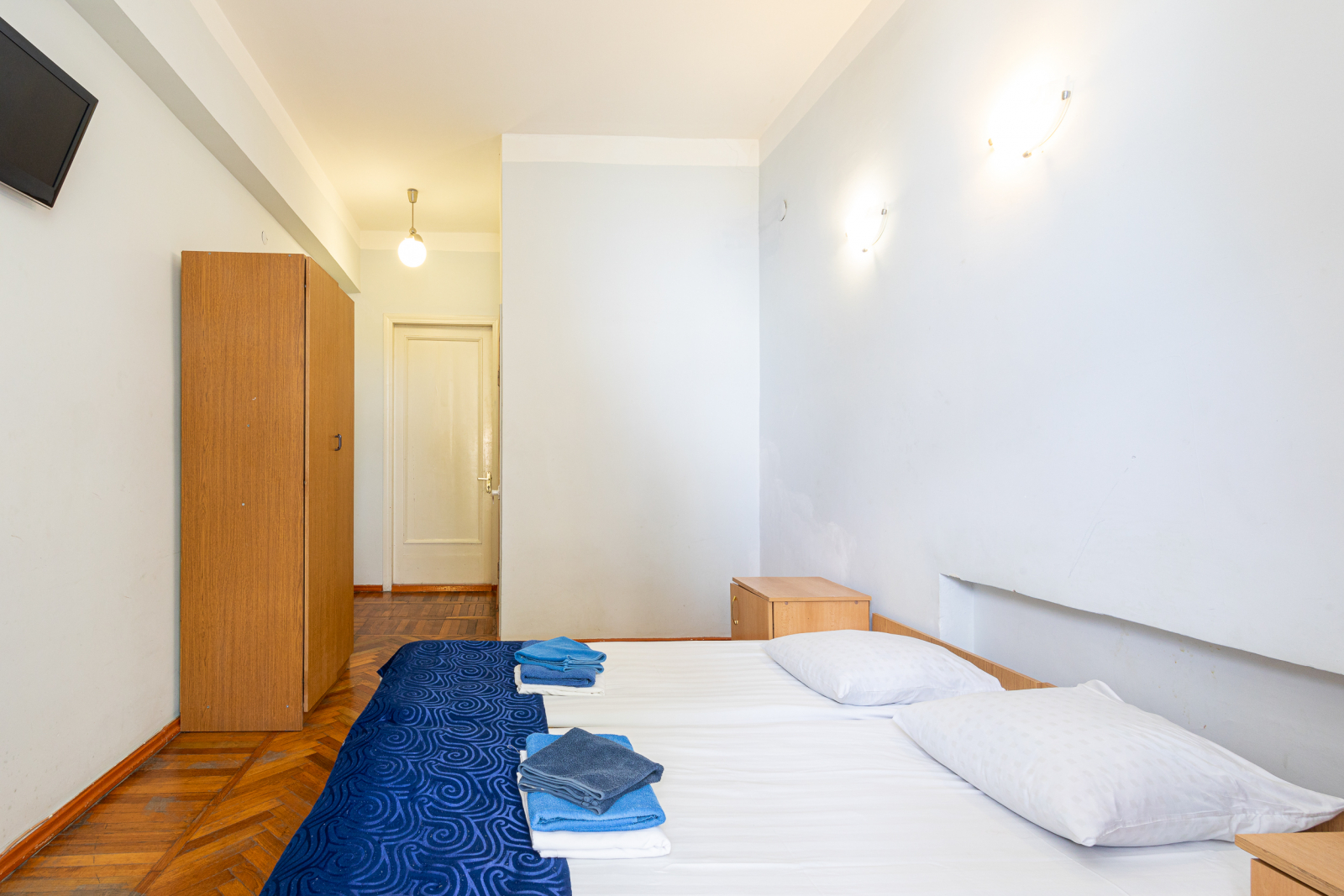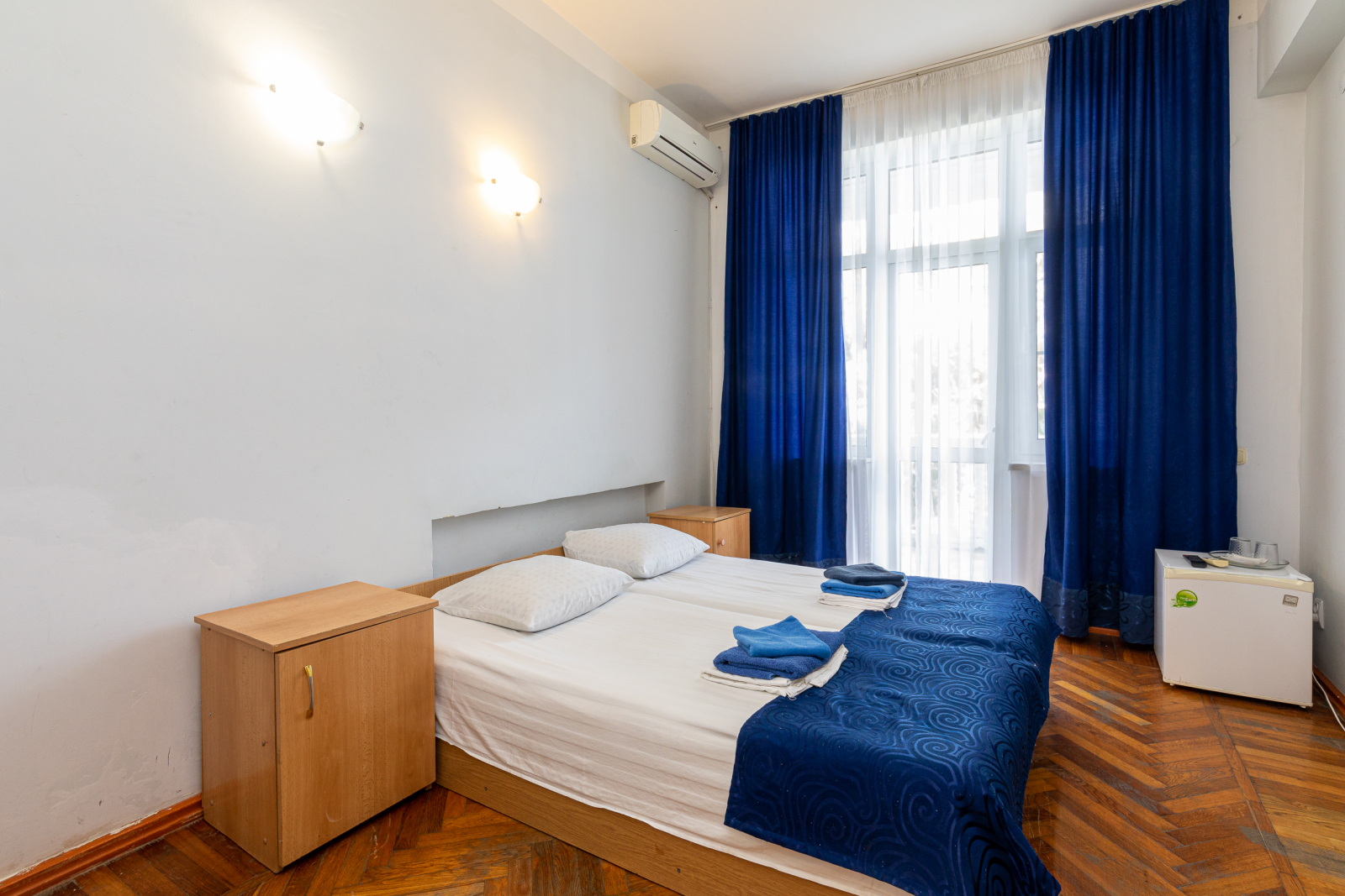 Площадь номера - 16 кв.м. 2 осн. места. 1 доп. место. Балкон. Мебель: вешалка, зеркало, кровати односпальные /одна двуспальная кровать, прикроватные тумбочки, стулья, шкаф. Оборудование: кондиционер, мини-холодильник, телевизор. Санузел: с душем, туалетные принадлежности. Сервис: Wi-Fi бесплатно, смена полотенец, смена постельного белья, уборка номера.